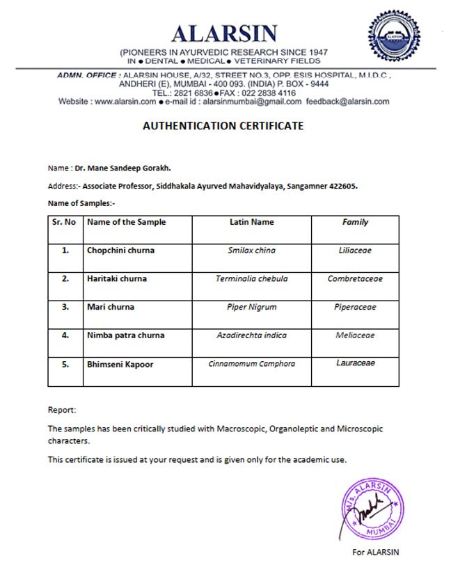 Analytical Report: Copchini Churna