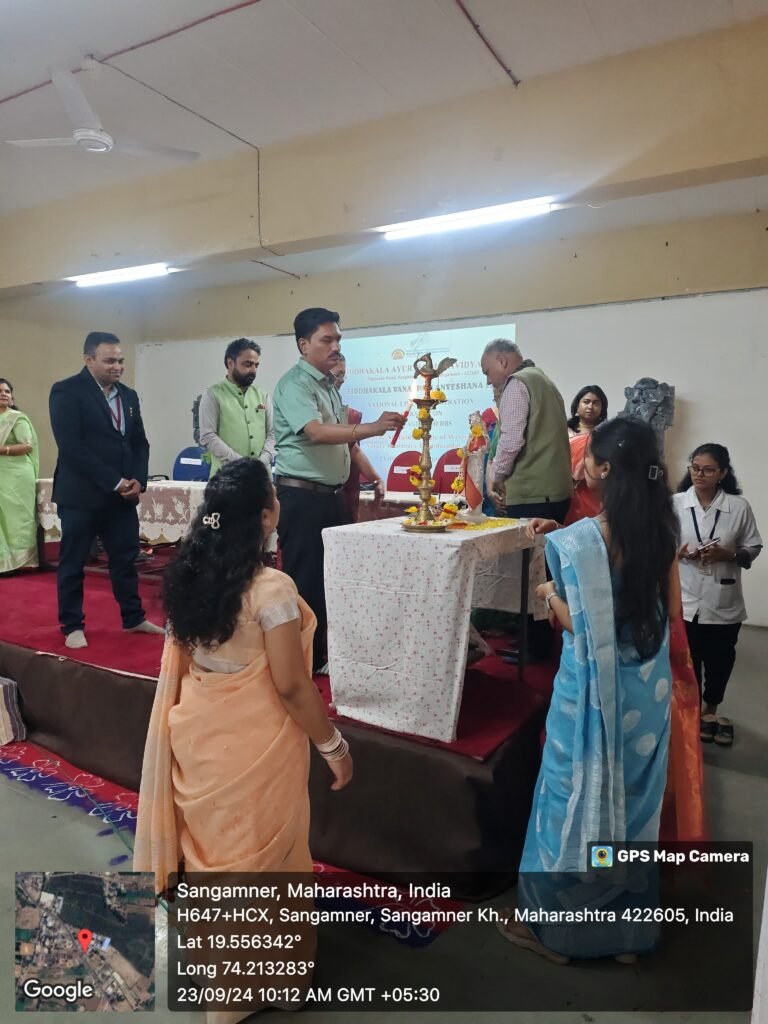 Dr. Pravin Joshi (Guest Speaker) is felicitated by Dr. Ushasi Ghosh Chaudhury ( Organizing Secretary and Lecturer of Dravyaguna Vigyana)