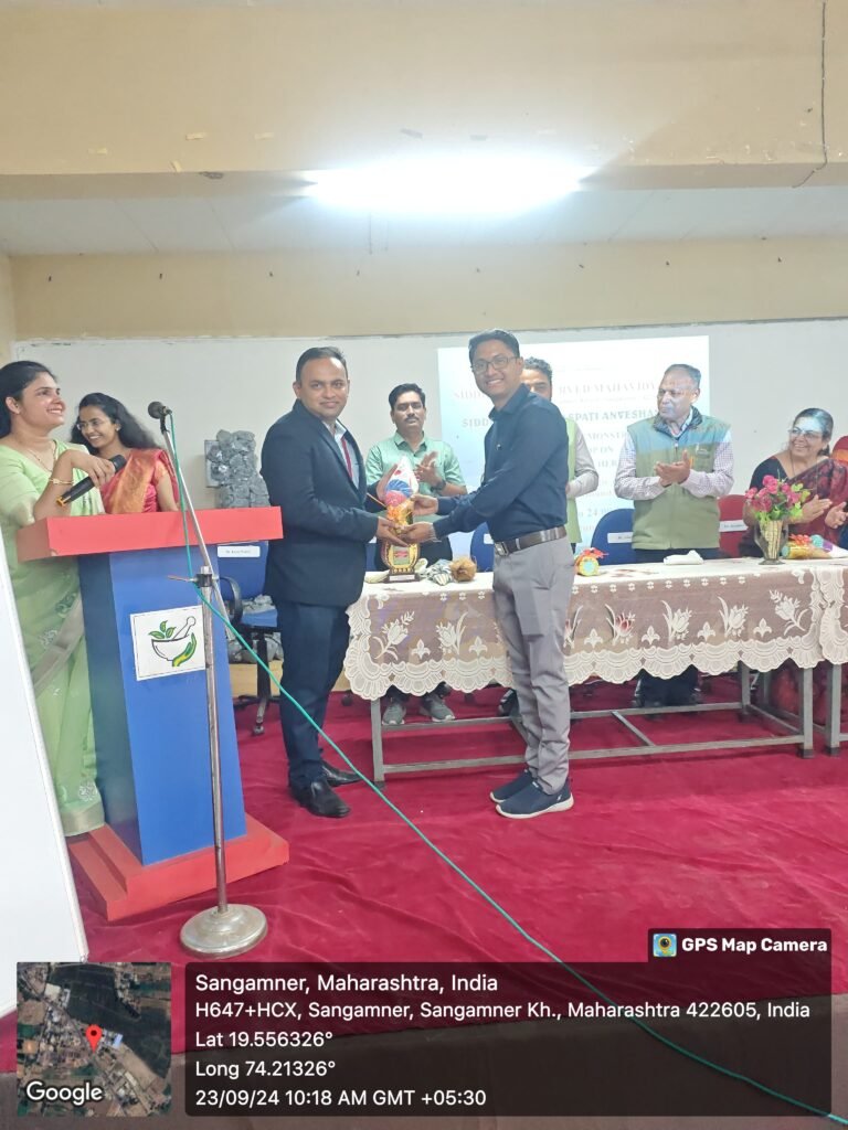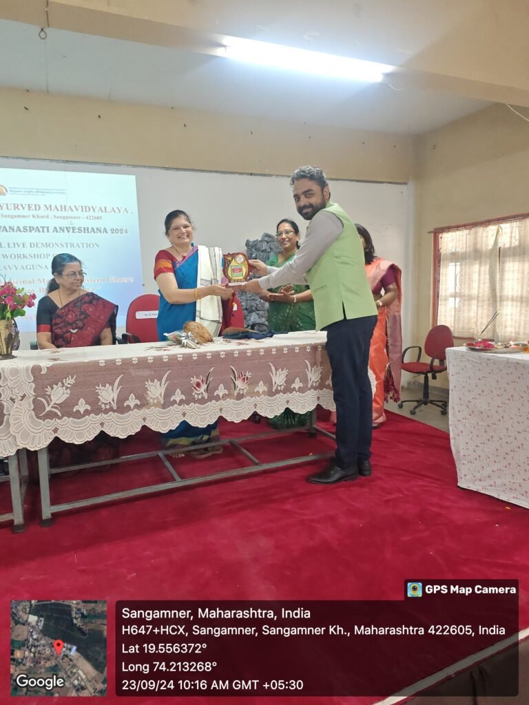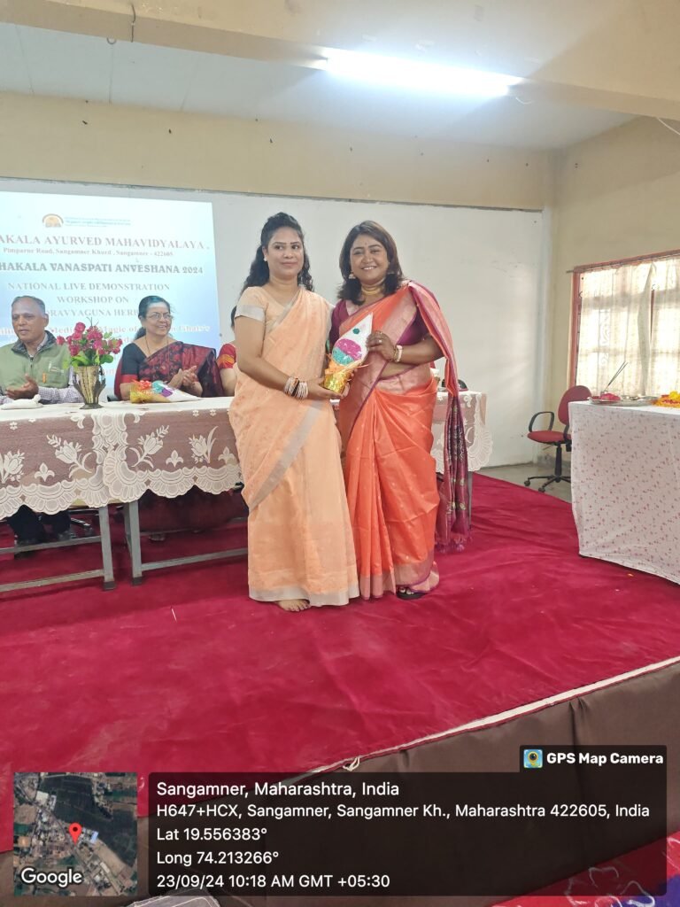 Hon. Dr. Jayashree K. Saraf (Trustee & Governing Council Member) is felicitated by Dr. Pavan Darole (Associate Professor of Kriya Sharir)